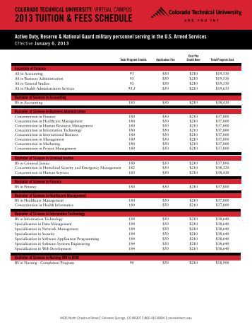 Seeking career opportunities in the civilian job market, Colorado Technical University is ready to assist you. We are committed to providing support and advice about your education and career goals. We offer degrees in Business, Criminal Justice, Management, ... Retrieve Content